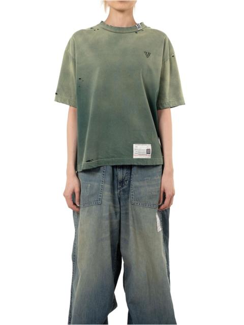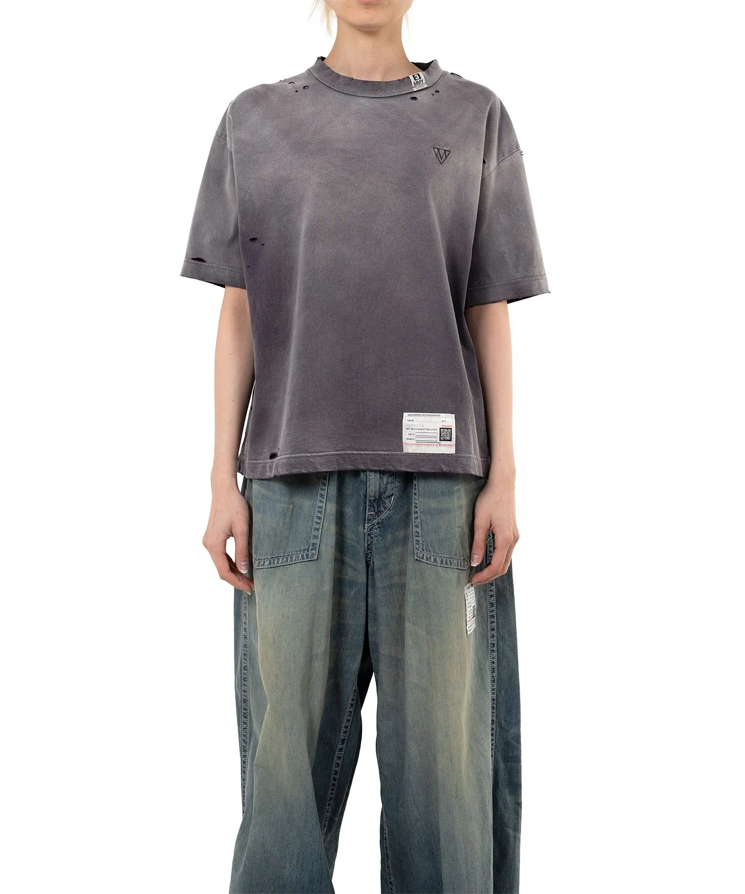 【2025 Autumn/Winter Collection】 Sun Faded Like T-shirt Bleached and damaged fabric T-shirt that looks as if it has been tanned with age. Designed with a torn front pocket. Original brand mark embroidered on the left chest. *Hole damage seen throughout is part of the design. Wearing model : 170cm Wearing size : 38 ※Product images may appear different from the actual item due to lighting conditions during photography or variations in monitor settings. ※Some photos feature sample items; actual products may differ slightly in finish or sizing. ※Color, texture, and specifications may vary slightly due to differences in production timing or individual characteristics of each piece. We appreciate your understanding. - Item No: B15TS591 - Brand: Maison MIHARA YASUHIRO - Category: WOMENS » TOPS » TSHIRTS - Season: 2025 A/W - Material: COTTON 100% - Made In: JAPAN