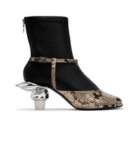 【2025 Autumn/Winter Collection】 Toothpaste Heel Python Printed Strap Boots Boots with heel in the shape of a tooth paste. Upper is made of supple cow leather. Metallic-colored heel accentuates the feminine basic pumps with a playful touch. Back zipper closure. Square toe. * Please note that the notations for 'JP' and 'US(WOMEN'S)' are shown for reference purposes only. Heel :7cm ※Product images may appear different from the actual item due to lighting conditions during photography or variations in monitor settings. ※Some photos feature sample items; actual products may differ slightly in finish or sizing. ※Color, texture, and specifications may vary slightly due to differences in production timing or individual characteristics of each piece. We appreciate your understanding. ※Stability when wearing may vary depending on the individual. Please use with caution depending on the walking environment. - Item No: B15FW707 - Brand: Maison MIHARA YASUHIRO - Category: WOMENS » SHOES WOMENS » SHOES » BOOTS - Season: 2025 A/W - Material: UPPER : COW LEATHER SOLE : COW LEATHER - Made In: CHINA
