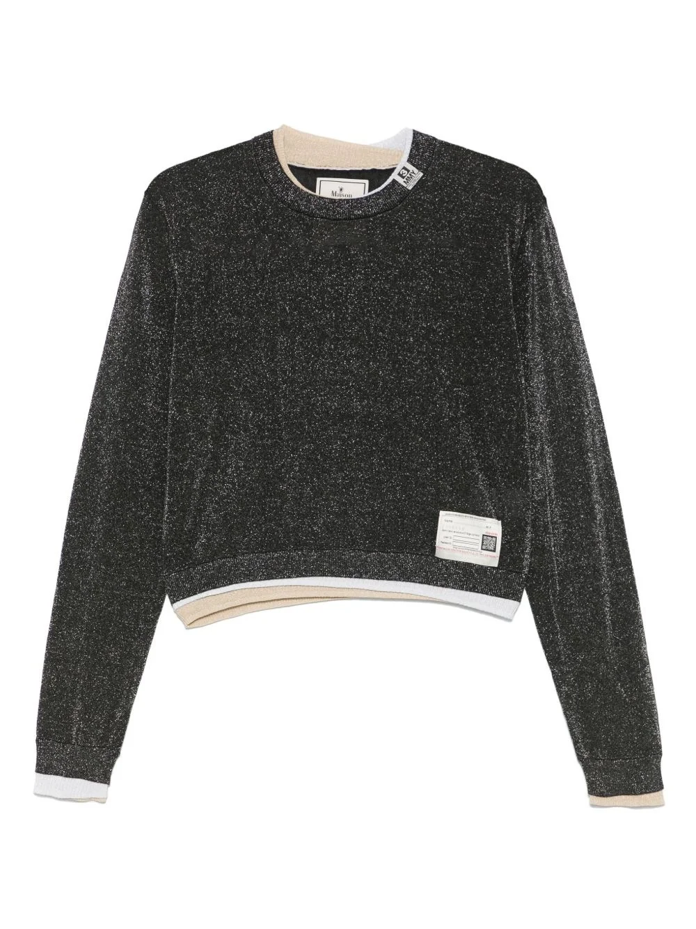 triple-layered glittered sweater Highlights - Black - Ribbed trim - Crew neck - Logo tag Imported Composition Polyester 49%, Cotton 35%, Linen/Flax 16% SIZE & FIT Model measurements Height 5 ft 10 in(1.78 m) Bust/Chest 31.49 in(80 cm) Hips 37 in(94 cm) Waist 23.62 in(60 cm) FittingInformation Designed for a relaxed fit, this piece allows for comfort and movement when worn Made with a lightweight knit, this piece offers some stretch