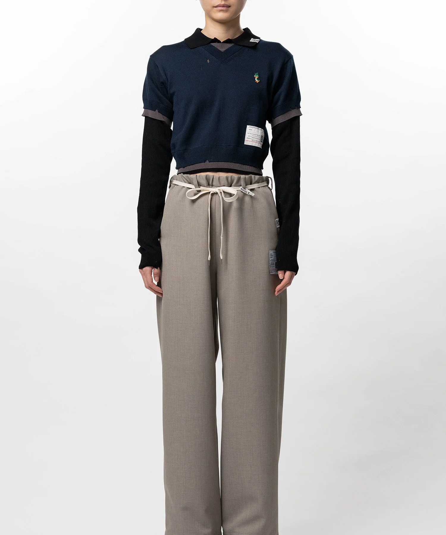【2026 Spring /Summer Collection】 Triple Layered Knit Sweater Three-layer knit sweater. Features Leon embroidery on the left chest. Hem and cuffs designed to look like frayed knit. Features overall distressed finish. Wearing model : 175cm Wearing size : 38 ※Product images may appear different from the actual item due to lighting conditions during photography or variations in monitor settings. ※Some photos feature sample items; actual products may differ slightly in finish or sizing. ※Color, texture, and specifications may vary slightly due to differences in production timing or individual characteristics of each piece. We appreciate your understanding. ※Intentional distressing such as holes, fading, and staining is part of the design and reflects the character of the item. Please enjoy these features as part of its unique aesthetic. - Item No: B16SW522 - Brand: Maison MIHARA YASUHIRO - Category: WOMENS » TOPS » KNIT - Season: 2026 S/S - Material: Main / Polyester23%, Rayon13% Other / Cotton64% - Made In: JAPAN