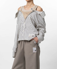 【2026 Spring /Summer Collection】 Triple Layered Stripe Shirt A three-layer shirt. Designed to be worn loosely over a tank top and camisole. Features a simple pull-over design without a front opening. Wearing model : 175cm Wearing size : 38 ※Product images may appear different from the actual item due to lighting conditions during photography or variations in monitor settings. ※Some photos feature sample items; actual products may differ slightly in finish or sizing. ※Color, texture, and specifications may vary slightly due to differences in production timing or individual characteristics of each piece. We appreciate your understanding. ※Intentional distressing such as holes, fading, and staining is part of the design and reflects the character of the item. Please enjoy these features as part of its unique aesthetic. - Item No: B16SH181 - Brand: Maison MIHARA YASUHIRO - Category: WOMENS » TOPS » SHIRT/BLOUSE - Season: 2026 S/S - Material: COTTON100% - Made In: JAPAN
