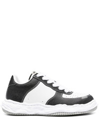 Wayne low-top sneakers Set atop the label's signature warped rubber outsole, these Wayne sneakers are a staple choice from Maison Mihara Yasuhiro's AW23 collection. Presented in a black and white colourway, they feature a tonal embroidered logo and perforated toebox. Highlights - Black/white - Panelled design - Contrast stitching - Perforated detailing - Embroidered logo to the front - Logo patch at the tongue - Round toe - Front lace-up fastening - Branded insole - Rubber sole Imported Composition Other fibres 100% SIZE & FIT Measurement HEEL 1.57 in(4 cm) Sole height 1.18 in(3 cm)