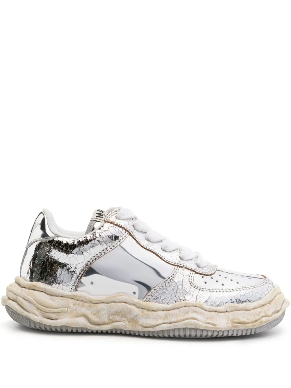 Wayne metallic-effect sneakers Highlights - Silver-tone - Calf leather - Metallic effect - Distressed finish - Panelled design - Applique logo - Round toe - Front lace-up fastening - Padded ankle - Perforated toebox - Branded insole - Chunky rubber sole Imported Composition Leather 100% SIZE & FIT Measurement HEEL 1.37 in(3.5 cm) Sole height 0.78 in(2 cm)