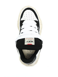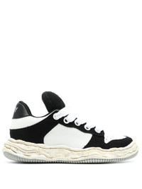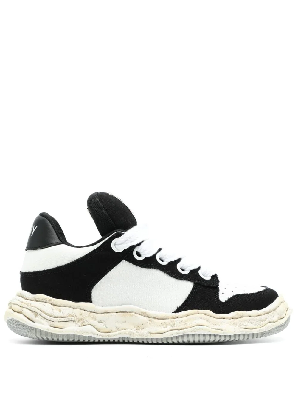 Wayne OG Sole leather sneakers Highlights - Black/white - Cotton - Smooth grain - Colour-block panelled design - Applique logo - Round toe - Front lace-up fastening - Perforated toebox - Branded heel counter - Branded insole - Chunky rubber sole Imported Composition Body: Cotton 100% Sole: Rubber 100% Lining: Cotton 100% SIZE & FIT Measurement HEEL 1.77 in(4.5 cm) Sole height 1.18 in(3 cm)