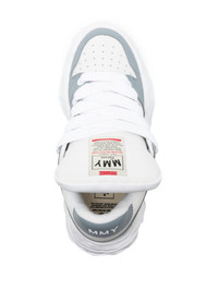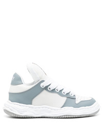 Wayne OG Sole leather sneakers Highlights - Blue-grey/white - Calf leather - Smooth grain - Colour-block panelled design - Applique logo - Round toe - Front lace-up fastening - Perforated toebox - Branded heel counter - Branded insole - Chunky rubber sole Imported Composition Leather 100% SIZE & FIT Measurement HEEL 1.77 in(4.5 cm) HEIGHT 3.54 in(9 cm) Sole height 1.37 in(3.5 cm)