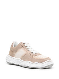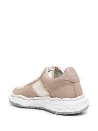 Wayne Original Sole chunky sneakers Maison Mihara Yasuhiro’s Wayne sneakers are characterised by the hand-moulded chunky warped sole that lends an experimental edge. The panelled leather upper is punctuated with a perforated toebox and embroidered logo detailing at the heel counter. Highlights - Beige - Cotton - Panelled design - Logo patch at the tongue - Perforated toebox - Round toe - Front lace-up fastening - Branded insole - Chunky rubber sole Imported Composition Body: Cotton 100% Sole: Rubber 100% Lining: Other fibres 100% SIZE & FIT Measurement Inside Sole 1.18 in(3 cm) Sole height 1.96 in(5 cm) Washing instructions Do Not Wash/Do Not Dry Clean