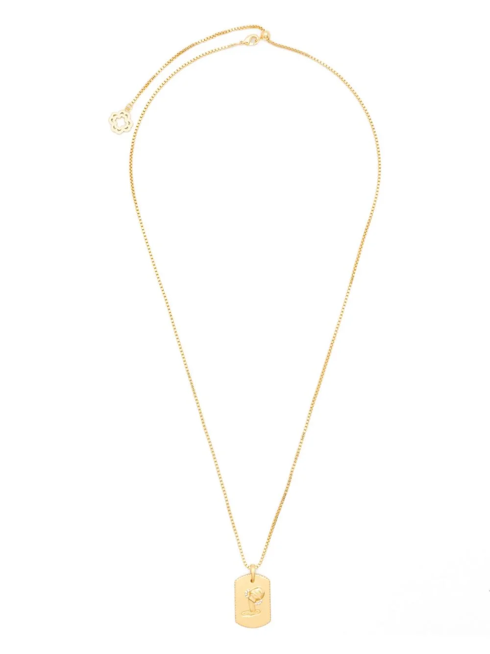 aquarius zodiac-design necklace Highlights - Brass - Gold - Aquarius motif - Zirconia stones - Polished finish - Rectangular pendant Imported SIZE & FIT Model measurements Height 5 ft 10 in(1.77 m) Bust/Chest 32.28 in(82 cm) Hips 35.03 in(89 cm) Waist 25.19 in(64 cm) Measurement Length when open 23.62 in(60 cm) PENDANT LENGTH 1.18 in(3 cm) PENDANT WIDTH 0.66 in(1.7 cm)