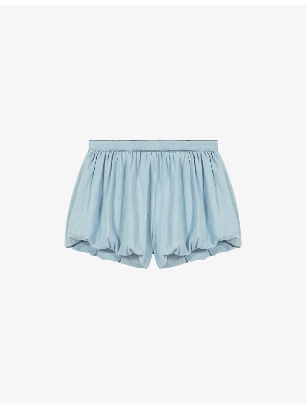 PRODUCT DETAILS - Maje chambray skort - 100% cotton - Zip fastening - Regular fit, mid-rise, balloon legs, branded patch to waistband - Machine wash mild - True to size - Lightweight, non-stretch Ref: R04612431