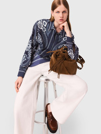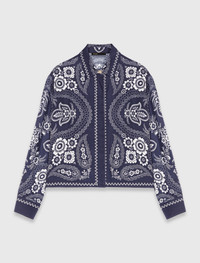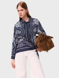 Bandana printed blouse Maje offers a collection of modern and elegant pieces to carry you through the seasons with ease. This fluid, satin shirt adorned with a floral print inspired by the paisley pattern stands out as an elegant and timeless piece in the collection. Featuring a shirt collar with a decorative button and long sleeves with buttoned cuffs, it has a longer cut at the back and a button fastening with a covered placket. Wear it with white trousers for a chic and fresh look, chunky loafers for a modern touch, and a fringed suede bag to complete this preppy and casual style. - Short, fluid, satin floral print shirt - Shirt collar with decorative button - Button fastening with covered placket - Longer at the back - Designed for a boxy fit The model is 5' 10 and wears a size 1. Reference: MFPCM00680_O026 Composition & care Main material: 100% viscose Buttons: 100% nacre Regular cycle 30° Do not bleach Do not tumble dry Iron at a maximum temperature of 110°C without steam F/ - Professional dry clean, with hydrocarbon solvent, gentle treatment