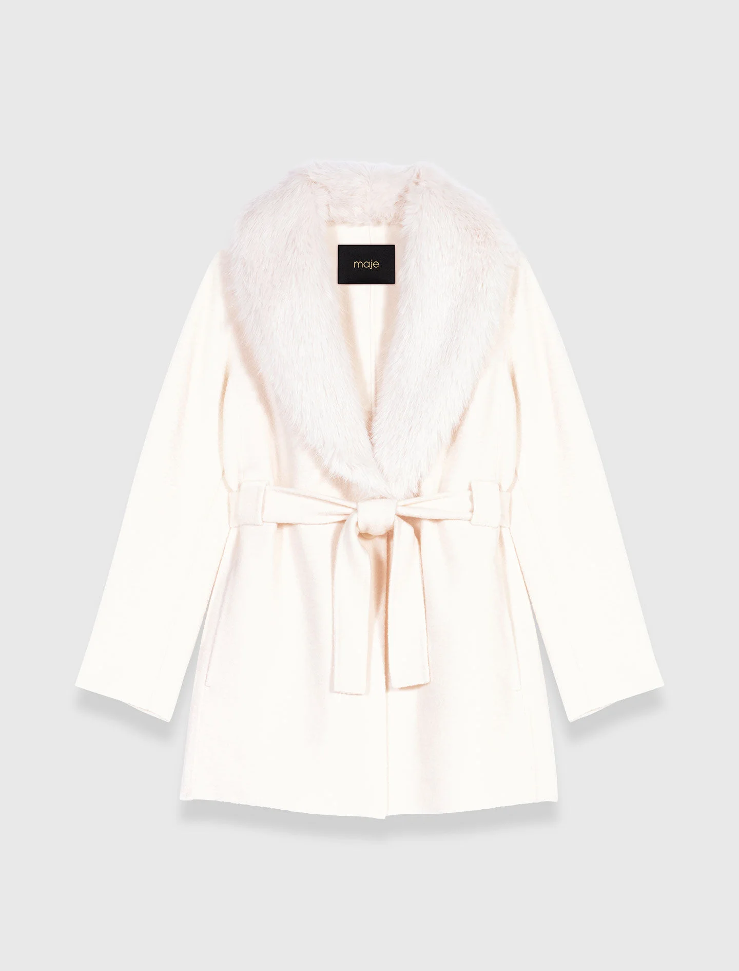 Belted short coat For this new collection, the studio draws its inspiration from British elegance for a new twist on wardrobes' classics. With its timeless cut and soft feel, this short coat will take pride of place in your seasonal wardrobe. Featuring a lapel collar, long sleeves and two flap pockets, the removable belt can be freely adjusted to emphasize your waist. Undeniably chic, it will add a stylish touch to your seasonal outfits. Easy to mix, match and accessorise, pair it with a jumper and casual jeans and top it off with boots. - Short coat - Removable belt - 2 pockets - Fits true to size The model is 5' 9 and wears a size FR 36. Reference: MFPOU01128_0101 Composition & care Main fabric: 87% wool, 13% polyamide Faux fur: 100% polyester Collar lining: 100% polyester Pocket lining: 100% polyester Do not wash Do not bleach Do not tumble dry Iron at a maximum temperature of 110°C without steam F/ - Professional dry clean, with hydrocarbon solvent, gentle treatment