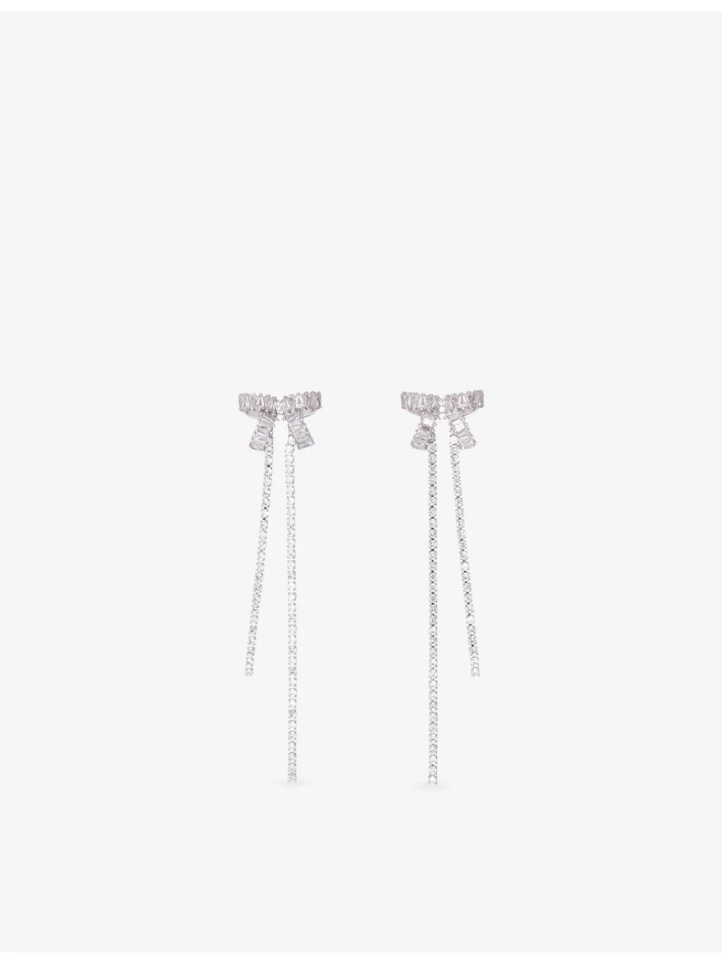 PRODUCT DETAILS - Maje brass drop earrings - 100% brass - Zirconium oxide stones - Post-back fastening - Bow motif, baguette-cut rhinestones to bow, rhinestone-embellished drop design - Dimensions: length 8cm - Please use a soft, dry polishing cloth - For hygiene reasons, we are unable to exchange or refund this product, unless faulty. Ref: R04578887