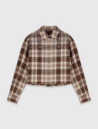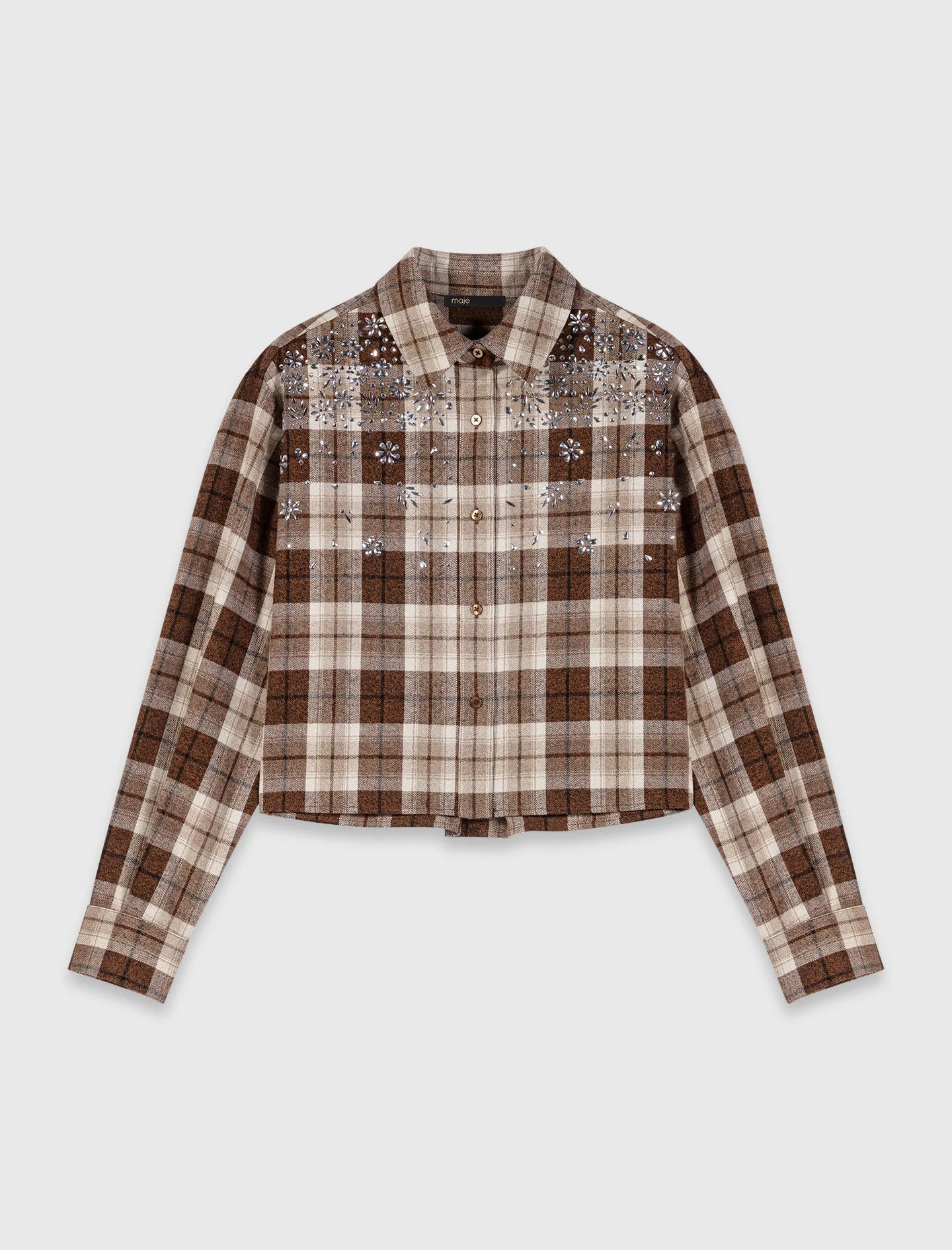 Rhinestone checked shirt This season is all about rich fabrics and contrasting effects, combining a rustic feel with a precious sparkle. Each piece is designed as a meeting of comfort and style, where a luminous detail reinvents classic codes. Here, the checked flannel has a supple drape and is distinguished by delicate rhinestone embroidery on the top. The shirt's simple lines are thus illuminated with a refined sparkle, transforming a basic into a statement piece. Wear it as a total look tucked into a skirt, with a yak collar, a rhinestone bag and leather boots to play with layering and create a silhouette that is both warm and assertive. - Checked flannel shirt - Embroidered rhinestone details on the top - Long sleeves with buttoned cuffs - Button fastening - Designed for a standard fit The model is 5' 10 and wears a size 1. Reference: MFPCM00703_U022 Composition & care Main material: 60% cotton, 40% polyester Hand wash Do not bleach Do not tumble dry Iron at a maximum temperature of 110°C without steam F/ - Professional dry clean, with hydrocarbon solvent, gentle treatment