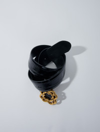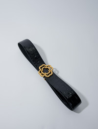 Croc-effect leather double M belt Crocodile-effect embossed leather belt available in black and cognac. - Double M logo clasp. - Width: 3 cm - 7 three settings 2.5 cm - Golden Brass Aged Effect - Embossed black crocodile leather and cognac - Double M Reference: MFACE00354_2517 Composition & care Lining: 91% polyester, 9% viscose Coating: 100% polyurethane Leather: cow Do not wash Do not bleach Do not tumble dry Do not iron Do not dry clean
