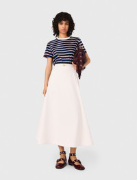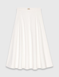 Heavy crepe skirt The collection is inspired by the relaxed elegance of an Italian spring, combining assertive femininity with meticulous details. This long skirt exudes lightness with its delicately flared cut that enhances the silhouette, and its removable Clover belt that precisely accentuates the waist. Opt for the season's standout T-shirt, and signature accessories, such as a fringed bag and square-toed studded ballet flats. - Flared long skirt with pockets - Removable Clover belt at the waist - Zip fastening at the back - Designed for a loose fit The model is 5' 9 and wears a size 36. Reference: MFPJU01491_10 Composition & care Main material: 92% polyester, 8% elastane Pocket lining: 100% viscose Hand wash Do not bleach Do not tumble dry Iron at a maximum temperature of 110°C without steam F/ - Professional dry clean, with hydrocarbon solvent, gentle treatment