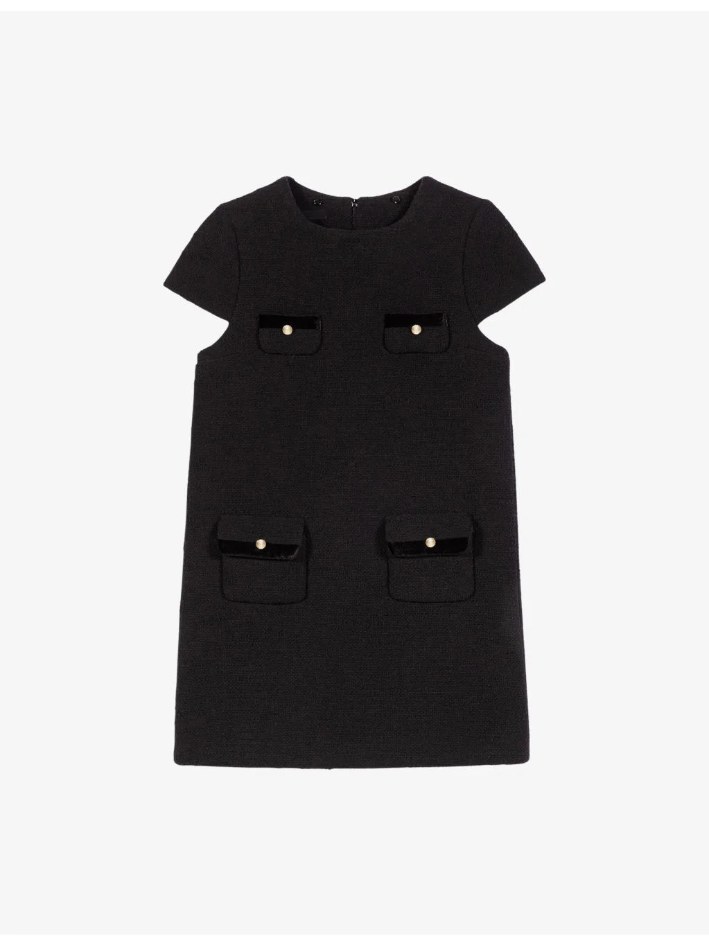 PRODUCT DETAILS - Maje stretch-tweed dress - 45% polyester, 41% cotton, 11% acrylic, 2% polyamide, 1% elastane - Concealed zip fastening at back - Regular fit, embellished collar, two buttoned pockets at the front, short sleeves - Dry clean - True to size - Model is 5ft 10in/1.78m and wears a size UK 8 - Midweight, slight-stretch Ref: R04532901