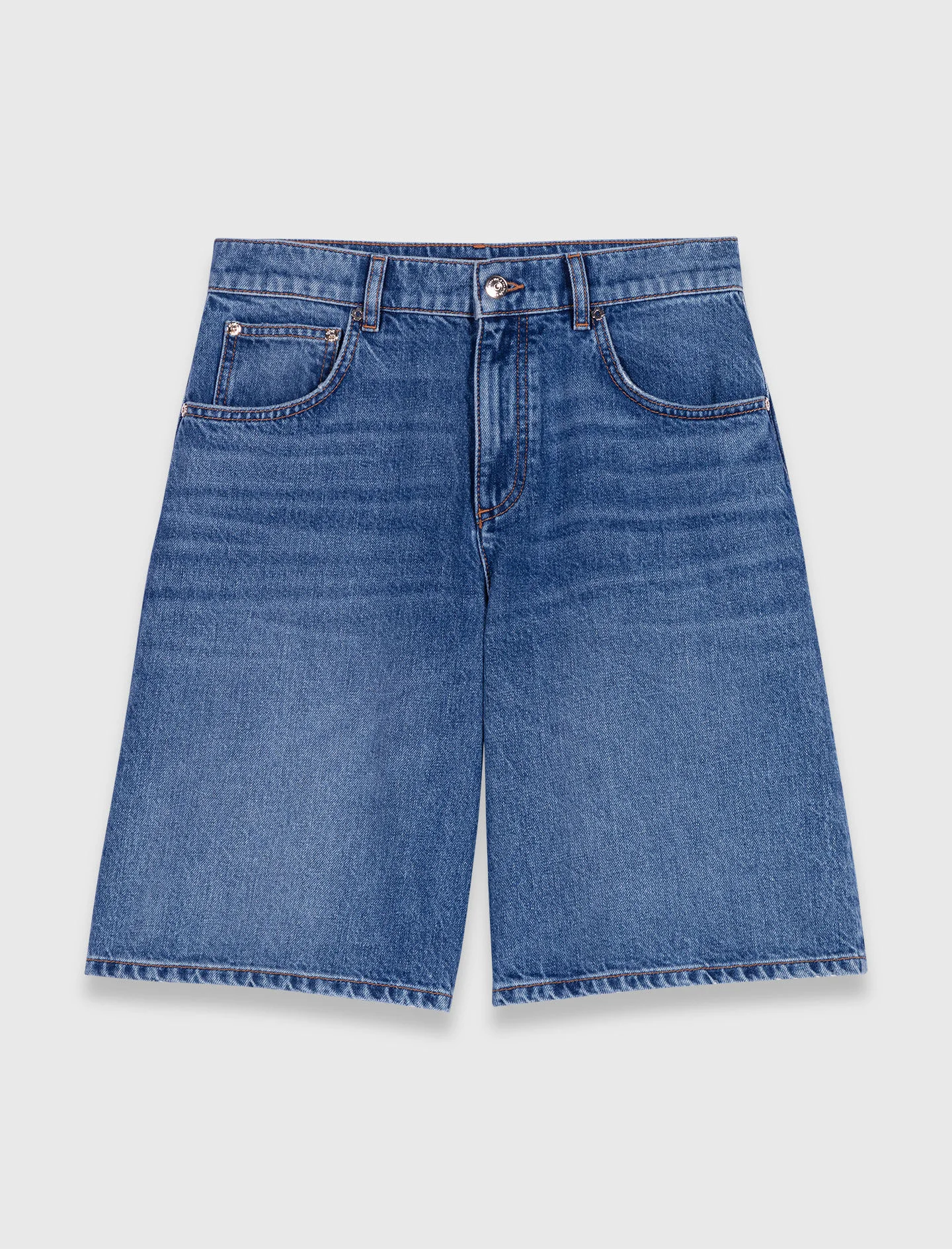 Denim Bermuda Shorts Maje offers a collection of modern and elegant pieces to carry you through the seasons with ease. Maje reimagines a seasonal essential: the faded denim Bermuda shorts. Its classic design with a zip and button fastening, along with belt loops, makes it a versatile and easy-to-pair piece. The Clover jacron on the back adds a subtle signature to this timeless piece. Wearable with all the season's looks, these Bermuda shorts pair perfectly with a striped knit top, a belt, and signature chunky-soled loafers for a relaxed and stylish look. - Faded denim Bermuda shorts - Zip and button fastening - Belt loops - Clover jacron on the back - Designed for a loose fit The model is 5' 10 and wears a size 36. Reference: MFPSH00667_0201 Composition & care Main material: 100% cotton Pocket lining: 67% polyester, 33% cotton Jacron: calfskin leather Regular cycle 30° Do not bleach Do not tumble dry Iron at a maximum temperature of 110°C without steam F - Professional dry clean, with hydrocarbon solvent, normal treatment