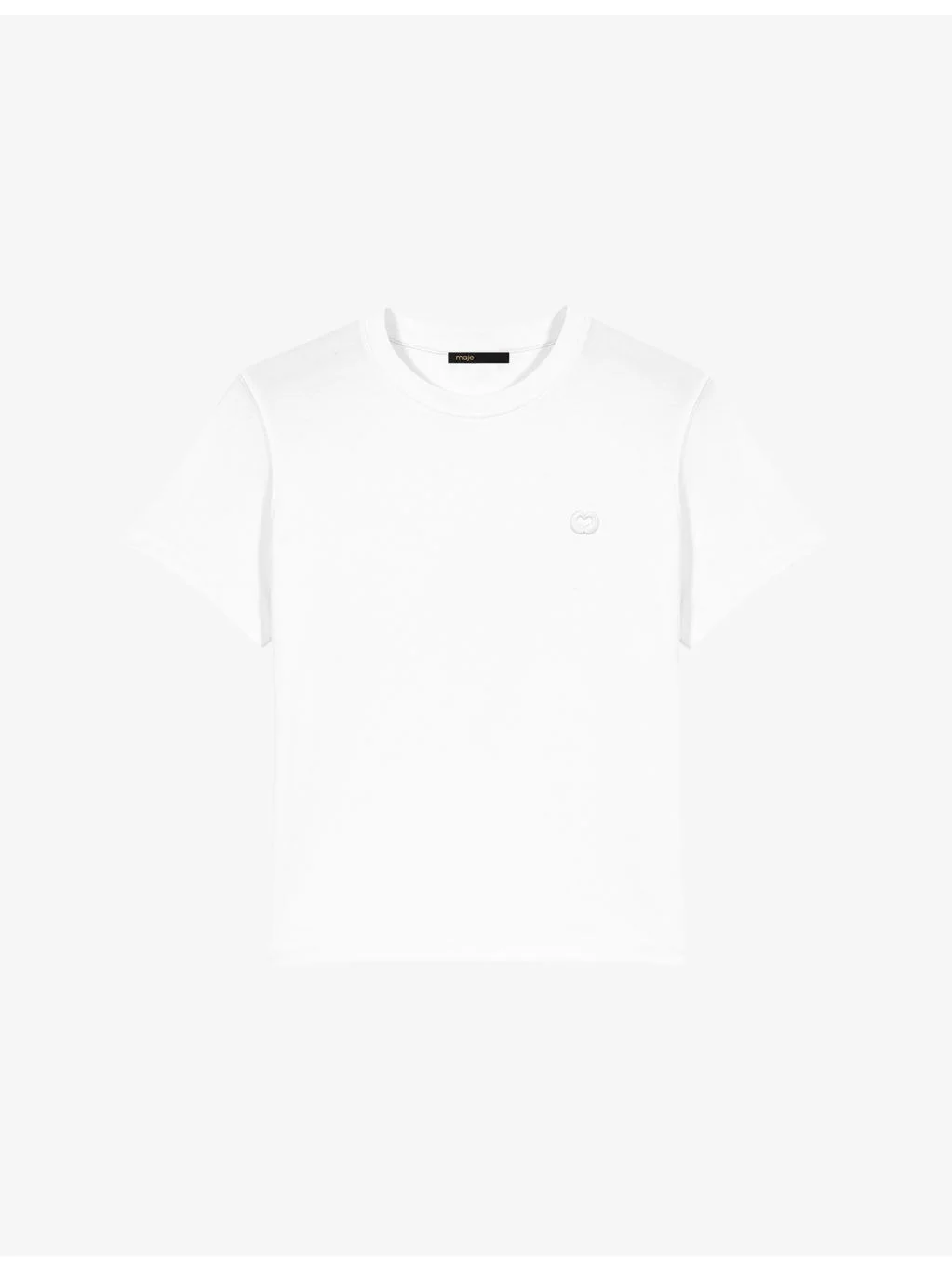 PRODUCT DETAILS - Maje cotton T-shirt - 100% cotton - Regular fit, crewneck, short sleeves, logo embroidery at chest - Machine wash at 30°C - True to size - Model is 5ft 9in/1.75m and wears a size UK 8 - Lightweight, non-stretch Ref: R04606193