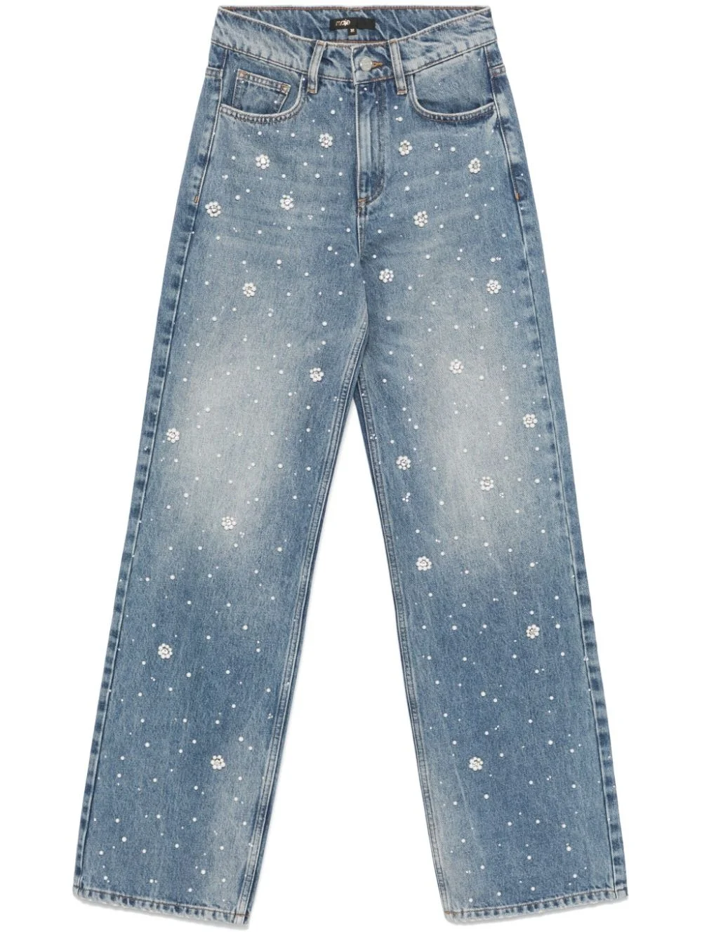 wide-leg embroidered jeans Highlights - Light blue - Faded effect - Rhinestone embellishment - Bead embellishment - Wide leg - Belt loops - Concealed fly and button fastening - Classic five pockets - Logo patch to the rear Imported Composition Cotton 100% Washing instructions Dry Clean Only