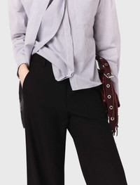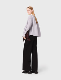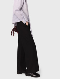 Flared trousers Inspired by the urban world, this season Maje reinvents timeless pieces from women's wardrobes with a touch of audacity. Ideal for all occasions, these flared trousers combine comfort and elegance to give your outfits a new twist. They have a crochet zip fastening, two front pockets and two welt pockets on the back. Slightly flared at the ankles, slip a belt through the belt loops for a fitted silhouette that's full of style. Mix and match them with a striped top, platform boots and jewellery for a chic yet casual look. Ref: MFPPA00544 - Wool-blend flares - Slightly flared legs - 2 side pockets and 2 welt pockets at the back The model is 5' 10 and wears a size 36. Reference: MFPPA00544_2517 Composition & care Main fabric: 52% polyester, 26% wool, 18% viscose, 4% elastane Pocket lining: 100% cotton Waistband lining: 100% cotton Do not wash Do not bleach Do not tumble dry Iron at a maximum temperature of 110°C without steam F - Professional dry clean, with hydrocarbon solvent, normal treatment