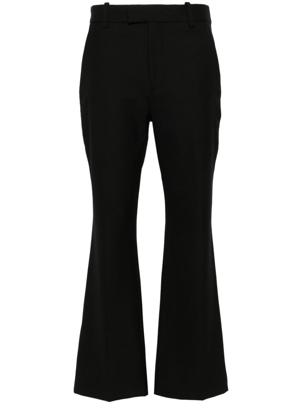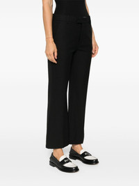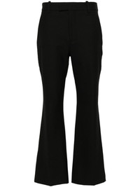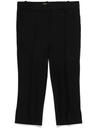 cropped trousers Highlights - Black - Concealed front button, hook and zip fastening - Two side slash pockets - Belt loops - Raised seam detail Imported Composition Lining: Cotton 97%, Elastane 3% Outer: Recycled Polyester 50%, Wool 26%, Viscose 18%, Polyester 6% SIZE & FIT Model measurements Height 5 ft 10 in(1.78 m) Bust/Chest 33.07 in(84 cm) Hips 36.22 in(92 cm) Waist 24.4 in(62 cm) FittingInformation Designed for a slim fit, these trousers offer a close fit at the waist, allowing a comfortable close fit and some movement over the leg Made from a midweight stretch fabric, this piece offers elasticity and flexibility when worn