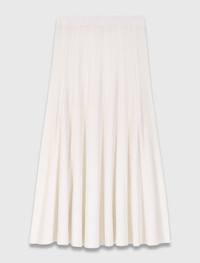 Long knit skirt This season showcases cocooning pieces, designed to offer both comfort and style. The knitwork is richer, the cuts more fluid, and the silhouettes are brought to life by intricate details. This cable-knit skirt stands out for its fluid drape and midi length, which elegantly elongates the figure. The braided details highlight the craftsmanship and add a graphic dimension. Paired with a fitted roll-neck and high boots, it creates a confident feminine look that is both modern and timeless. - Textured cable-knit skirt - Flared midi length - High waist and braided details - Designed for a loose fit The model is 5' 11 and wears a size 36. Reference: MFPJU01530_0101 Composition & care Main material: 41% polyester, 30% polyamide, 21% acrylic, 8% wool Waistband: 42% polyester, 29% polyamide, 21% acrylic, 8% wool Hand wash Do not bleach Do not tumble dry Iron at a maximum temperature of 110°C without steam F - Professional dry clean, with hydrocarbon solvent, normal treatment