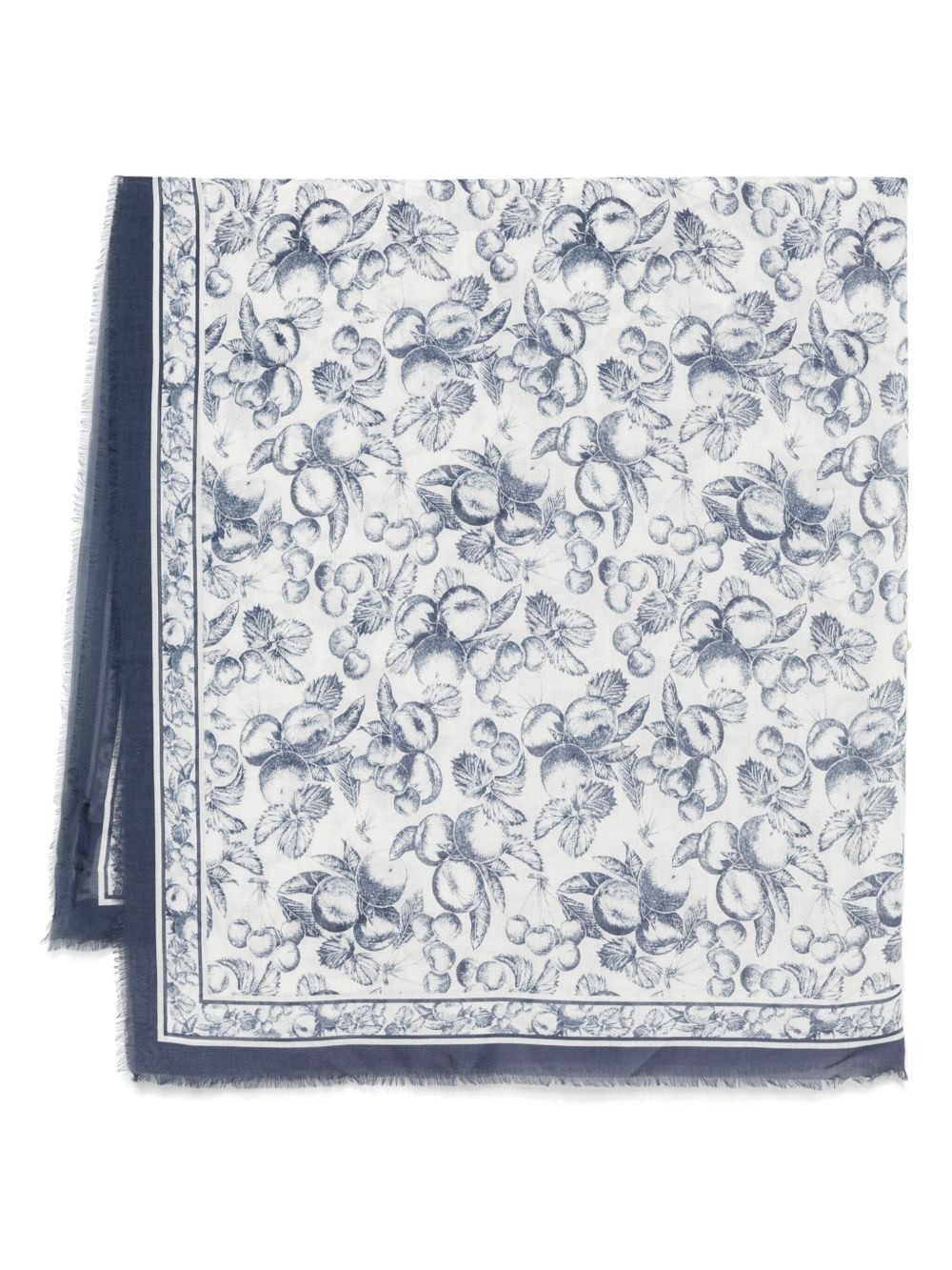 fruit-print scarf Highlights - Navy blue - Contrasting border - Frayed edge - Wraparound style Made in Italy SIZE & FIT Measurement LENGTH 55.11 in(140 cm) WIDTH 54.33 in(138 cm)