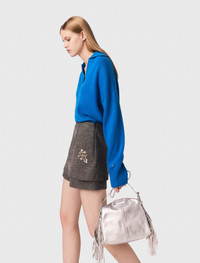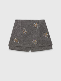 Floral embroidered shorts Inspired by reinvented tailoring, these herringbone shorts play on contrasts of texture and light. Their graphic cut is enhanced with sequin-embroidered patches, crafted in the Maje workshops for a subtle and refined effect. Pair with the matching jacket for a bold silhouette, or contrast with an oversized knit for a more casual twist. A structured, luminous piece, ideal for punctuating the winter season. - Herringbone shorts - Tone-on-tone sequin embroidered patches - Short, slightly flared cut - Zip fastening - Designed for a standard fit The model is 5' 10 and wears a size 36. Reference: MFPSH00679_0505 Composition & care Main material: 86% polyester, 14% viscose Lining: 100% viscose Inner fabric: 100% polyester Do not wash Do not bleach Do not tumble dry Do not iron F/ - Professional dry clean, with hydrocarbon solvent, gentle treatment