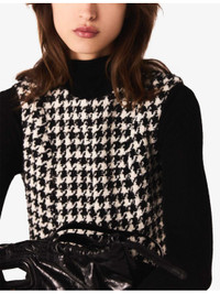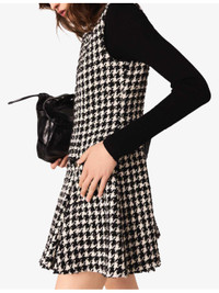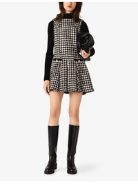 PRODUCT DETAILS - Maje tweed dress - 33% cotton, 25% acrylic, 24% polyester, 14% wool, 2% metalized fibers, 2% other fibres - Concealed zip fastening at back - Regular fit, round neck, sleeveless, two pockets at the side, all-over houndstooth design, gold-tone hardware, flared skirt - Dry clean - True to size - Model is 5ft 10in/1.78m and wears a size UK 8 - Midweight, non-stretch Ref: R04533898