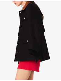 PRODUCT DETAILS - Maje cotton parka - 100% cotton - Exposed popper fastenings at front - Regular fit, contrast leather collar, multiple pockets at the front, gold-tone buttons, storm vent at the back - Dry clean - True to size - Model is 5ft 10in/1.78m and wears a size UK 8 - Midweight, non-stretch Ref: R04514807