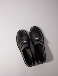 Leather loafers This season, the studio pays tribute to the celebratory spirit and timeless elegance of French fashion. An ode to glamour and sophistication, each piece embodies a party vibe and a sense of celebration, redefining chic with a touch of daring. These leather loafers have a smooth, flat, padded sole for added comfort, and embody timeless elegance with a preppy twist. Both chic and casual, they feature a Clover gold medallion hidden in the tongue. - Plain leather loafers - Clover gold medallion - Smooth, flat sole - Padded sole Reference: MFACH00699_2517 Composition & care Lining: cow Ornaments: 100% zamac Outer sole: 100% ethylene vinyl acetate Upper: cow Sock lining: cow Jewellery: 100% zamac Do not wash Do not bleach Do not tumble dry Do not iron Do not dry clean