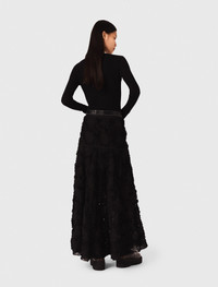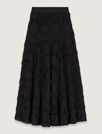 Long embroidered skirt This long skirt is made from tulle embellished with embroidered flowers. It has a full, flared style, for airy elegance with every step. It has a short lining for optimum comfort, and an elasticated waistband. It's a great all-rounder for any occasion. Team it with a top and ballet flats made from mesh for a flattering look. - Long tulle skirt - Flower panels - Elasticated waistband - Flared - Short lining - Designed to be fitted at the waist and loose throughout the skirts body The model is 5' 11 and wears a size FR 36. Reference: MFPJU01410_2517 Composition & care Main material: 100% polyester Lining: 100% viscose Elastic: 91% polyester, 9% elastodiene Mesh: 100% polyester Do not wash Do not bleach Do not tumble dry Do not iron F/ - Professional dry clean, with hydrocarbon solvent, gentle treatment