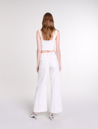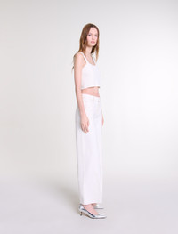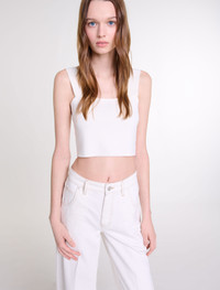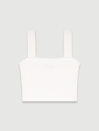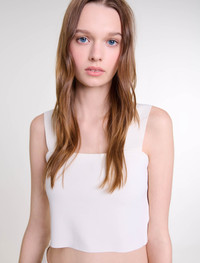 Knit crop top This season, the studio has come up with an everyday wardrobe with a relaxed feel, where timeless pieces have been reinvented with bold and feminine details. This warp knit crop top is chic and timeless, and a classic for the summer season. Alongside wide straps and a straight neckline, it's a versatile choice for casual outfits or more sophisticated looks. Mix and match it with wide-leg jeans, a signature bag and silver trainers for a chic, casual outfit. - Warp knit crop top - Wide straps - Straight neckline Reference: MFPTO01000_0101 Composition & care Main material: 70% viscose, 28% polyamide, 2% elastane Edge: 66% viscose, 32% polyamide, 2% elastane Strap: 81% viscose, 19% polyamide Hand wash Do not bleach Do not tumble dry Iron at a maximum temperature of 110°C without steam F - Professional dry clean, with hydrocarbon solvent, normal treatment