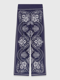 Flowing bandana print pants Maje marks a return to everyday life with modern, lightweight pieces, perfect for the seasonal transition. These flowy satin trousers with a floral print stand out for their elegant cut and elasticated back waist, offering both comfort and fluidity. The paisley bandana print adds a chic bohemian touch that fits perfectly with this season's trend. Wear with the matching shirt, a coordinating scarf in your hair, and chunky loafers for a look that combines style and comfort, ideal for back-to-school days. - Flowy satin trousers - Paisley floral print - Elasticated back waist - Designed for a standard fit The model is 5' 10 and wears a size 36. Reference: MFPPA00737_O026 Composition & care Main material: 100% viscose Regular cycle 30° Do not bleach Do not tumble dry Iron at a maximum temperature of 110°C without steam F/ - Professional dry clean, with hydrocarbon solvent, gentle treatment