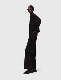 Rhinestone denim shirt This season is all about an interplay of texture and light, and the Maje studio is boldly reinventing classic pieces. Covered entirely in tone-on-tone rhinestones, this denim shirt will make your winter sparkle. With long sleeves and a button fastening, it can be worn open as an overshirt or buttoned all the way up. Add the matching jeans for a total look, with chic loafers and a fringed bag. - Black denim shirt with all-over rhinestones - Straight cut and classic structure - Long sleeves and button fastening - Two patch chest pockets - Designed for a boxy fit The model is 5' 10 and wears a size 1. Reference: MFPCM00686_2517 Composition & care Main material: 99% cotton, 1% elastane Hand wash Do not bleach Do not tumble dry Iron at a maximum temperature of 110°C without steam Do not dry clean