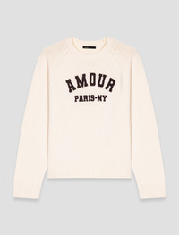 Wool sweater Inspired by the energy of New York and Parisian elegance, this jumper combines comfort with style. Made from ribbed knit, it features an embroidered Amour Paris NY message and an easy-to-wear everyday fit. Pair it with a long tailored belt, a scarf tied around the neck, and cowboy-style boots for a casual chic silhouette, perfect for both city and weekend wear. - Long-sleeved ribbed knit jumper - Amour Paris-NY inscription - Ribbed material at the edges - Designed for a loose fit The model is 5' 10 and wears a size 1. Reference: MFPPU00957_0101 Composition & care Main material: 55% wool, 25% polyamide, 20% cotton Embroidery: 100% acrylic Rib: 53% wool, 28% polyamide, 18% cotton, 1% elastane Hand wash Do not bleach Do not tumble dry Iron at a maximum temperature of 110°C without steam F - Professional dry clean, with hydrocarbon solvent, normal treatment