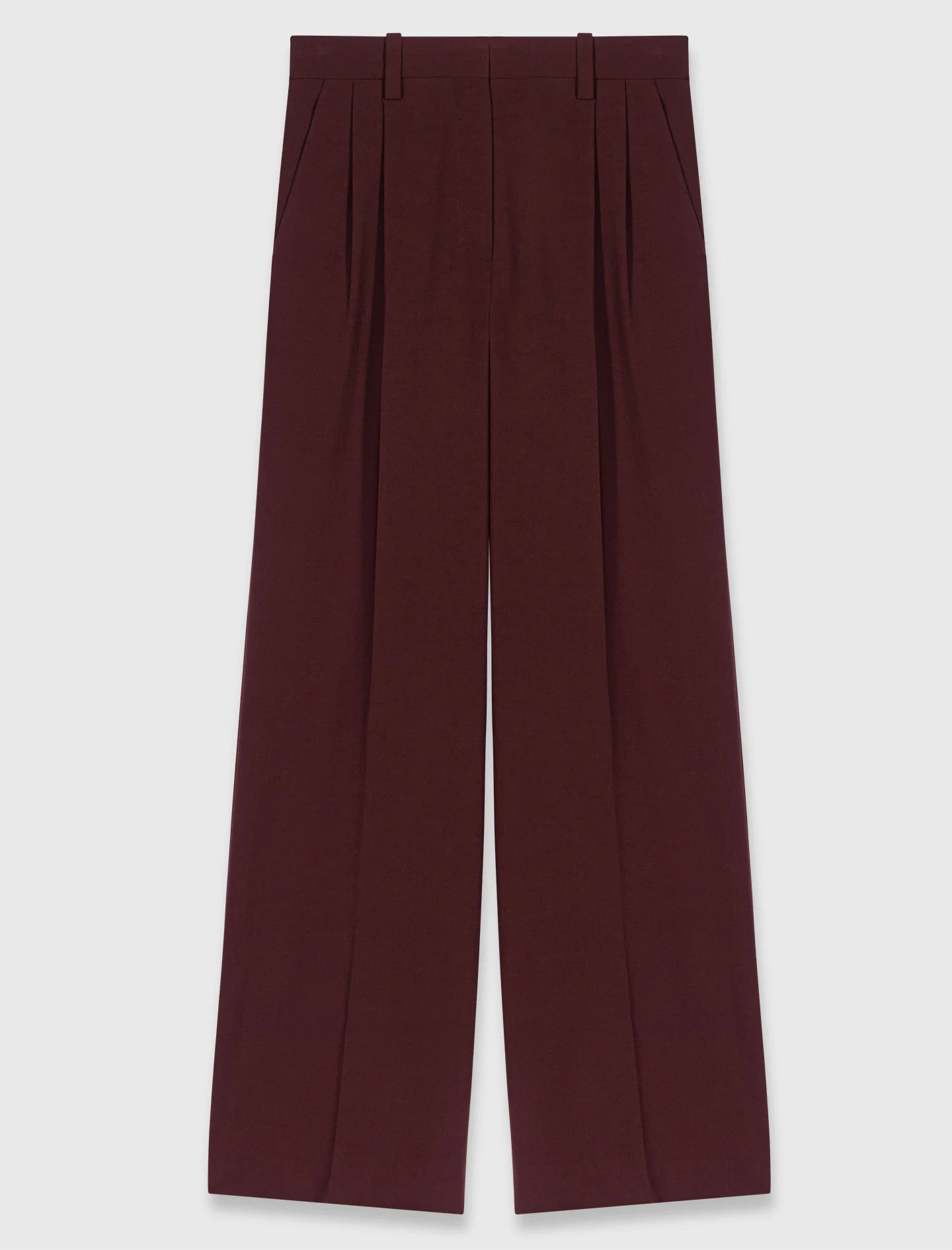 Tailored high-waisted suit trousers Wide cut and assertive style. Maje reinterprets tailoring in a contemporary version, designed to structure the silhouette precisely. These high-waisted trousers are a wardrobe essential, to be paired with the matching piece and accompanied by signature accessories, such as a leather bag and slingback heels. - Wide-leg suit trousers - High-rise - Belt loops - Designed for a standard fit The model is 5' 10 and wears a size 36. Reference: MFPPA00742_0150 Composition & care Main material: 53% wool, 42% polyester, 5% elastane Pocket lining: 100% viscose Do not wash Do not bleach Do not tumble dry Iron at a maximum temperature of 110°C without steam F/ - Professional dry clean, with hydrocarbon solvent, gentle treatment