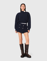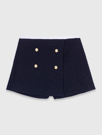 Tweed shorts with contrast waistband When classic tailoring lines meet a contemporary twist. These trompe-l'œil shorts play on contrast with their poplin waistband and structured front panel. A graphic silhouette to style as you wish. - Tweed-effect shorts with contrast band - Skirt-style front panel - Back zip fastening - Designed for a tailored fit The model is 5' 10 and wears a size 36. Reference: MFPSH00689_0103 Composition & care Main material: 53% polyester, 28% cotton, 18% viscose, 1% elastane Pocket lining: 100% viscose Secondary material: 100% cotton Inner fabric: 100% polyester Do not wash Do not bleach Do not tumble dry Iron at a maximum temperature of 110°C without steam F/ - Professional dry clean, with hydrocarbon solvent, gentle treatment
