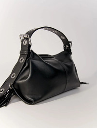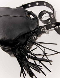 Smooth leather Miss M bag The latest addition to Maje's collection, Miss M is a real fashion statement. Judith Milgrom has designed a generation's It bag with the hallmarks of the classic M — rectangular leather handles, fringing and detailed topstitching. It has the cool Maje look and the generous size makes it ideal for essentials. Thanks to the long adjustable eyelet strap, create a variety of styles! Carry it by hand for a casual look; short or long on your shoulder for a classic touch. You can also wear it cross-body for a stylish urban vibe. The Miss M stands out for its generous bold buckles at each end of the handles and subtle piercing allowing for endless charm personalisation. This classic smooth leather version in black will go with anything. Get your mini Miss M here . - Bag with eyelet strap - 4 carrying options - Flap fastening - 1 interior patch pocket - Dimensions: 31 x 16 x 11.50 cm - Strap: 115 cm Reference: MFASA01077 Composition & care Lining: 100% polyester Leather: sheepskin Do not wash Do not bleach Do not tumble dry Do not iron Do not dry clean