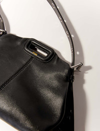 Smooth leather mini Miss M bag The latest addition to Maje's collection, Miss M is a real fashion statement. Judith Milgrom has designed a generation's It bag with the hallmarks of the classic M — rectangular leather handles, fringing and detailed topstitching. It has the cool Maje look and is designed to be a versatile accessory, coming in two sizes and a variety of fabrics and colours. Thanks to the long adjustable eyelet strap, create a variety of styles! Carry it by hand for a casual look; short or longer on your shoulder for a classic touch. Or wear it cross-body for a stylish urban vibe. The Miss M stands out for its generous bold buckles at each end of the handles and subtle piercing allowing for endless charm personalisation. This mini smooth leather version is compact with room for your essentials and comes in a palette of seasonal colours. - Mini bag with eyelet strap - 4 carrying options - Dimensions: 22 x 13 x 11 cm and strap: 115 cm - 1 interior patch pocket and flap fastening Reference: MFASA01078 Composition & care Main material: sheepskin Lining: 100% polyester Do not wash Do not bleach Do not tumble dry Do not iron Do not dry clean