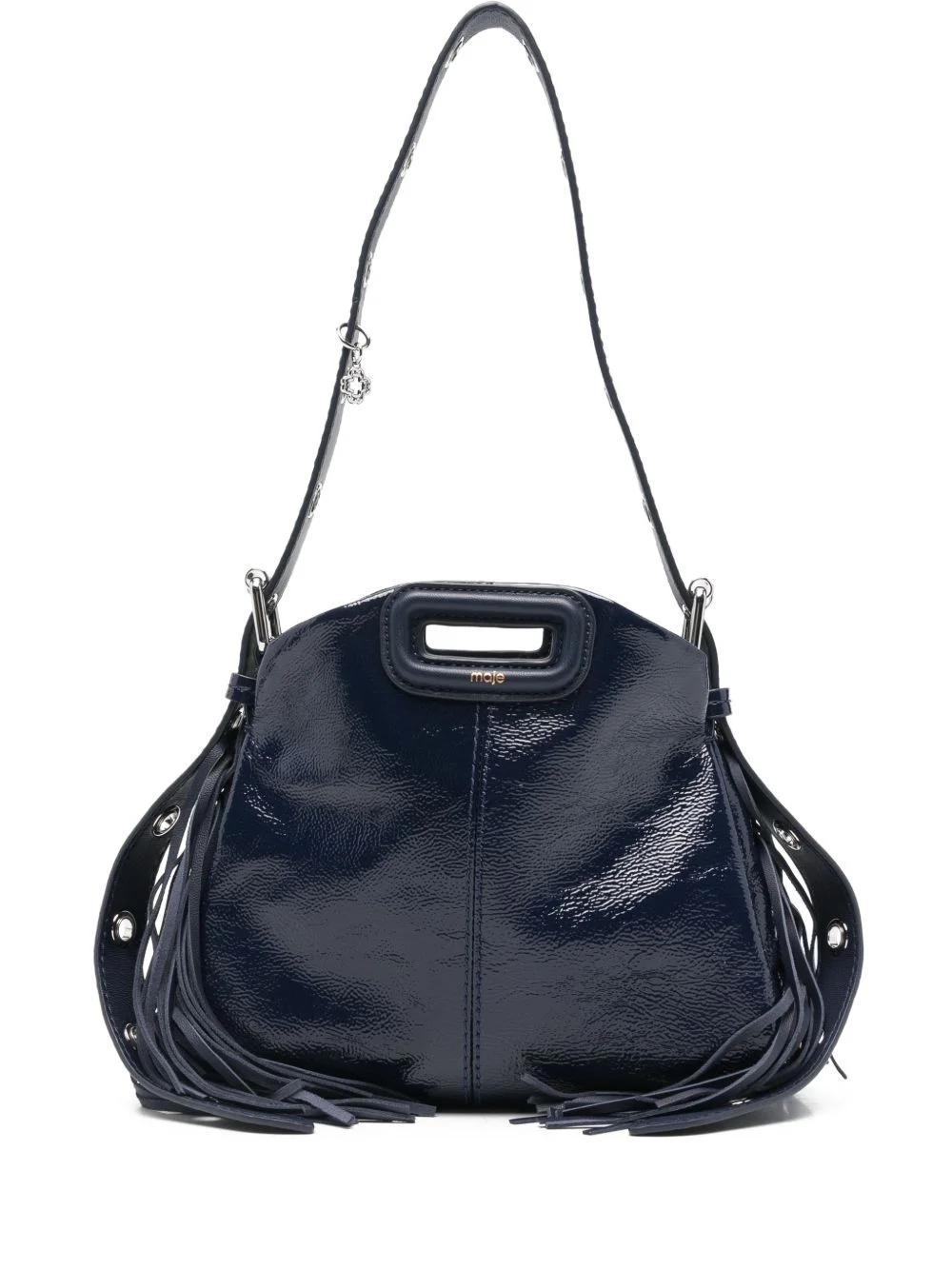 Miss M fringe embellished bag Highlights - Navy blue - Leather - Top handle - Fringe detailing - Grommet detailing - Adjustable shoulder strap Imported Composition Outer: Calf Leather 100%, Sheepskin 100% Lining: Polyester 100% SIZE & FIT Model measurements Height 5 ft 10 in(1.78 m) Bust/Chest 31.49 in(80 cm) Hips 37 in(94 cm) Waist 23.62 in(60 cm) Measurement DEPTH 3.14 in(8 cm) HEIGHT 7.48 in(19 cm) WIDTH 9.44 in(24 cm)