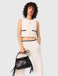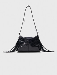 Miss M mini cracked leather bag The latest addition to Maje's collection, Miss M, is a real fashion statement. Judith Milgrom has designed the it bag of a generation with all the hallmarks of the classic M bag — rectangular leather handles, fringing and detailed topstitching. It has the cool Maje look and is designed to be the ultimate versatile accessory, coming in two sizes and a variety of fabrics and colours. Thanks to the long and adjustable strap, embellished with eyelets, you can create a variety of styles! Carry it by hand for a casual look, short or longer on your shoulder for a classic touch, or wear it crossbody for a stylish metropolitan vibe. The Miss M is set off by details that make all the difference: large, bold buckles at either end of the handles and a discreet piercing. This mini version in crackled leather comes in the season's star colour and is compact enough to carry everything you need. - 4 carrying options - Dimensions: 22 x 19 x 11 cm - Shoulder strap: 111 cm - 1 interior patch pocket and flap fastening Reference: MFASA01128 Composition & care Main material: cow leather Lining: 100% polyester Do not wash Do not bleach Do not tumble dry Do not iron Do not dry clean