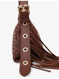 PRODUCT DETAILS - Maje leather cross-body bag - 100% sheepskin leather - Magnetic fastening - Adjustable strap with clover charm, eyelet embellishment, all-over studs, one main compartment, gold-tone hardware - Height 19cm, width 16cm, depth 8cm - Specialist leather clean Ref: R04490295