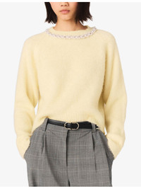 PRODUCT DETAILS - Maje knitted jumper - 53% polyamide, 47% alpaca - Regular fit, round-neck, detachable necklace embellishment, long sleeves, ribbed trims, fluffy finish - Hand wash - True to size - Midweight, slight stretch Ref: R04578899