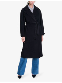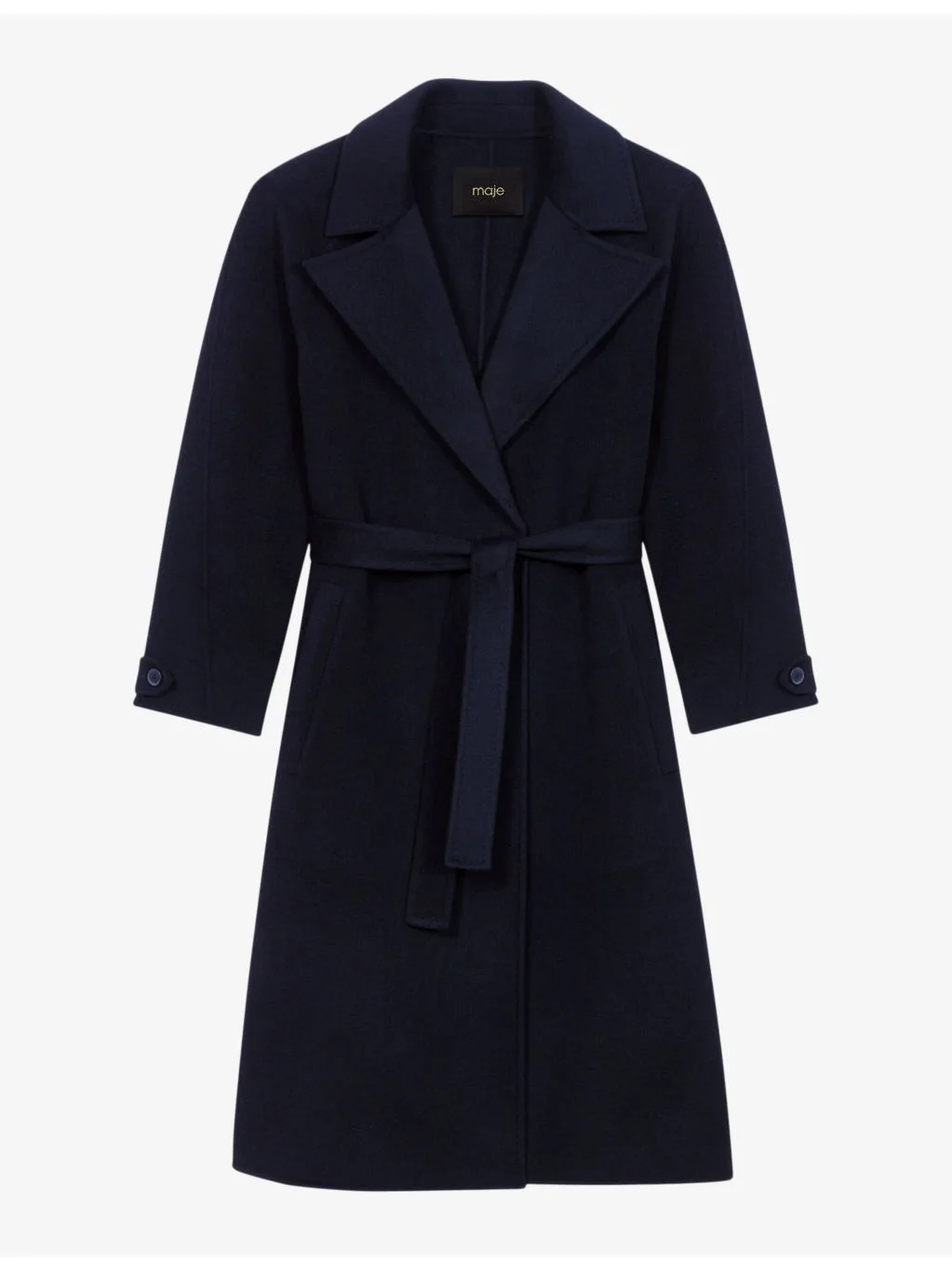 Notched-lapels detachable-belt regular-fit wool-blend coat