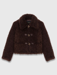 Short curly coat This season, Maje has designed a wardrobe with organic lines and characterful textures. This short curly coat is full of contrasts: a structured cut, raw finishes and couture details. Its oversized collar and Brandenburg-style fastenings in metal and rope create a unique style and add warmth to your look. Add feminine pieces to complete the look: a pleated skirt, jewel belts and leather loafers. - Short curly coat - Brandenburg fastenings in metal and rope - Satin lining - Designed for a standard fit The model is 5' 11 and wears a size 36. Reference: MFPOU01402_0609 Composition & care Main material: 100% polyester Lining: 100% polyester Faux leather: 100% polyurethane Regular cycle 30° Do not bleach Do not tumble dry Iron at a maximum temperature of 110°C without steam F/ - Professional dry clean, with hydrocarbon solvent, gentle treatment