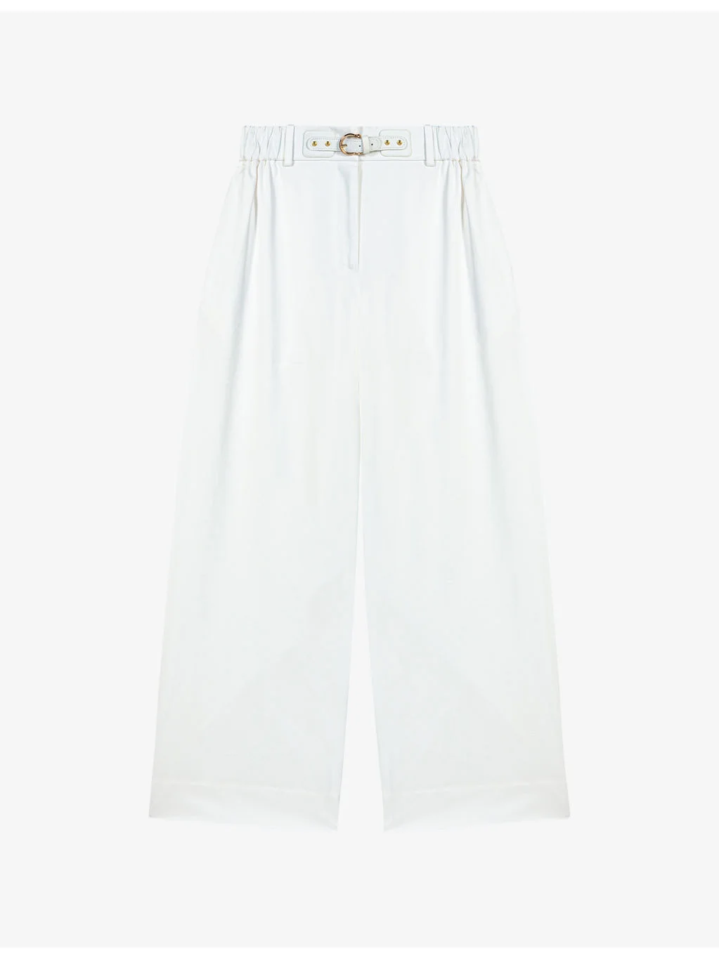 Paperbag-Waist Wide-Leg Cotton Trousers