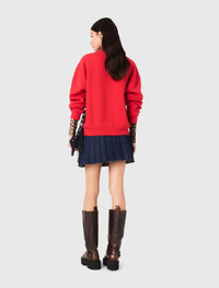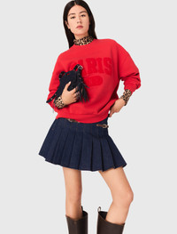 Paris New York Lettering Sweatshirt Between the dynamic energy of New York and the relaxed elegance of Paris, this sweatshirt embodies modern metropolitan style. Made from comfortable fleece, it combines simplicity and character with its Paris NY graphic lettering. Paired with a leopard turtleneck for a contrast effect, it fits under a modern silhouette enhanced by high boots and a Miss M micro bag. Comfortable and stylish, it stands out as a must-have in the casual-chic wardrobe, perfect for a look full of character. - Soft fleece sweatshirt - Classic round neck and long sleeves - Graphic PARIS NY lettering in looped fabric - Designed for an oversized fit The model is 5' 10 and wears a size 1. Reference: MFPSW00204_0515 Composition & care Main material: 100% cotton Embroidery: 100% acrylic Rib: 100% cotton Regular cycle 30° Do not bleach Do not tumble dry Iron at a maximum temperature of 110°C without steam Do not dry clean