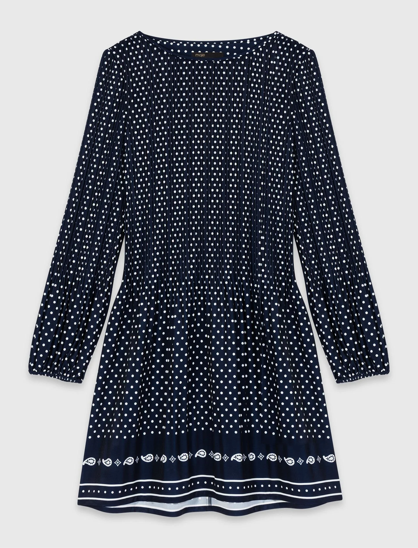 Patterned pleated dress .. Reference: MFPRO04613_D054 Composition & care Main material: 100% polyester Hand wash Do not bleach Do not tumble dry Do not iron F/ - Professional dry clean, with hydrocarbon solvent, gentle treatment
