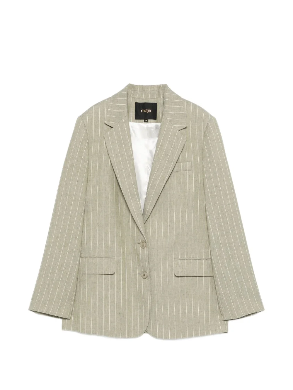 pinstripe-pattern blazer Highlights - Khaki green - Pinstripe pattern - Front pockets - Two-button fastening - Notched lapels - Long sleeves Imported Composition Outer: Linen/Flax 52%, Cotton 47%, Viscose 1% Lining: Viscose 100% Washing instructions Dry Clean Only