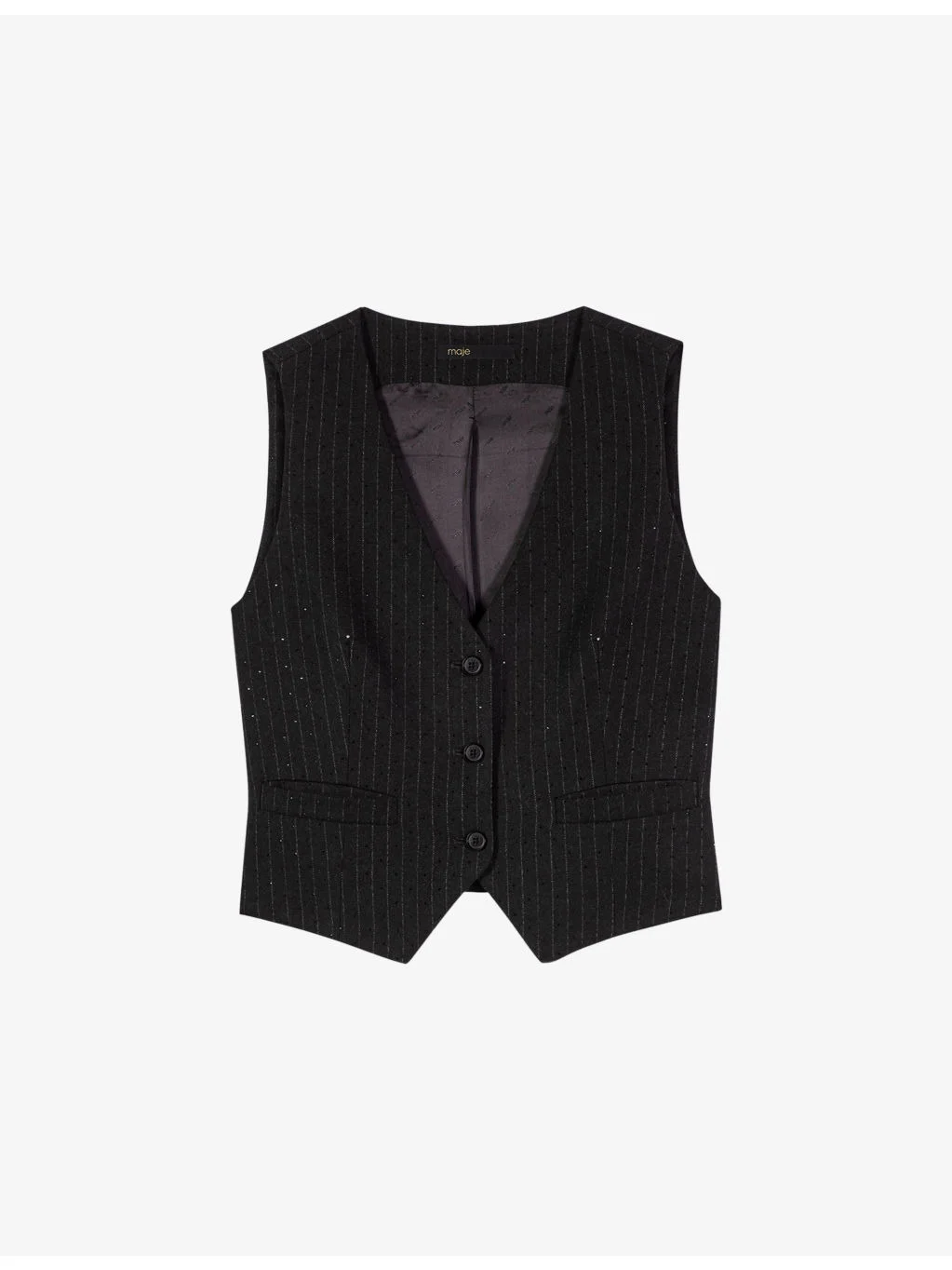 PRODUCT DETAILS - Maje stretch-woven vest - 64% polyester, 34% viscose, 2% elastane - Button fastening - Regular fit, V-neck, sleeveless, all-over pinstriped pattern, diamante embellishment - Hand wash - True to size - Lightweight, slight stretch Ref: R04548796